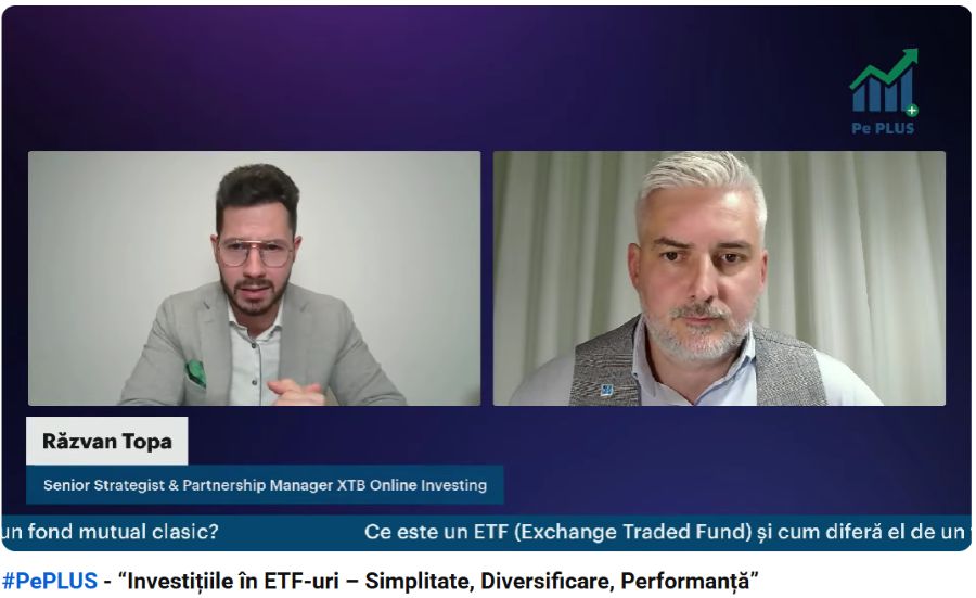 Investițiile în ETF-uri au devenit în ultimii ani una dintre cele mai populare opțiuni în rândul investitorilor români, datorită accesibilității, costurilor reduse și diversificării naturale pe care o oferă. În cea mai recentă ediție a emisiunii PePLUS, Răzvan Topa, Senior Strategist & Partner la XTB România, a explicat pe larg modul de funcționare al acestor instrumente și a realizat inclusiv o demonstrație live în platformă, pentru a arăta cât de simplu pot fi alese și tranzacționate.