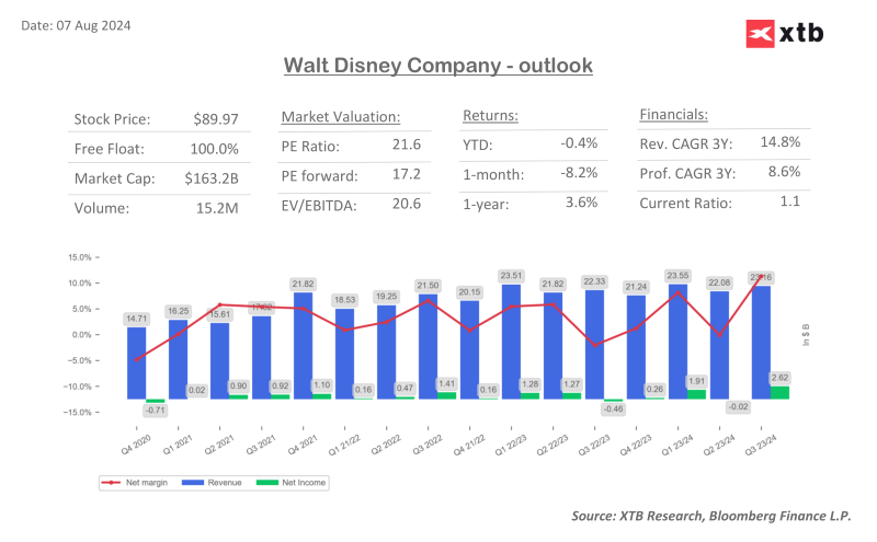 Disney a raportat azi rezultatele financiare pentru al doilea trimestru care au depășit majoritatea așteptărilor analiștilor. Gigantul din sectorul de divertisment a înregistrat o creștere a veniturilor pe toate segmentele și a obținut profitabilitate în activitatea de streaming, dar a raportat o scădere a profitului operațional în segmentul Experiences, adică exact cel care se ocupă cu parcurile tematice Disneyland.