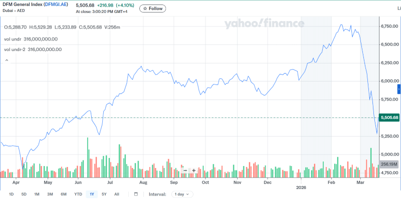 Dubai Financial Market (DFM) a închis în creștere puternică, cu indicele general DFM la 5.505,68 puncte (+4,10%), susținut de un avans solid al sectorului imobiliar. Acțiunile grele din acest sector — Emaar Properties, Emaar Development și alți dezvoltatori — au urcat semnificativ după ce agenția S&P a reconfirmat poziția robustă și reziliența acestor companii în fața impactului tensiunilor geopolitice actuale.