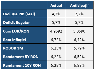 Astfel, rata anticipată a inflației pentru orizontul de 12 luni (decembrie 2024) a crescut față de exercițiul anterior și s-a situat la valoarea medie de 6,42%.