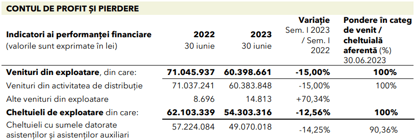 Veniturile din activitatea de distributie au scazut cu 15%, in timp ce rezultatul net a fost cu 30% sub nivelul aceleiasi perioade a anului anterior.