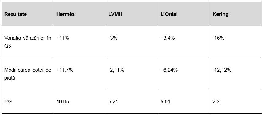Într-adevăr, LVMH și Kering au afectat întregul sector, raportând rezultate mult sub standardele lor din ultimii ani. Veniturile LVMH au scăzut cu 3% în al treilea trimestru, afectate de China, în timp ce Kering a înregistrat o performanță și mai dezamăgitoare, cu o scădere de 16% a veniturilor, inclusiv o scădere de 25% pentru marca sa emblematică Gucci. Moncler nu a fost imună la această tendință, înregistrând o scădere de 3% a veniturilor. Cu toate acestea, în mijlocul acestui torent de vești proaste, o companie continuă să reziste: Hermès.
